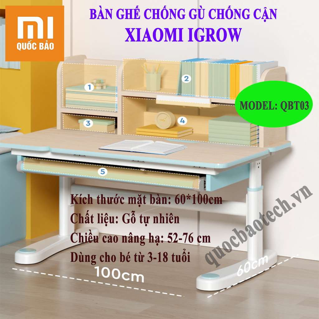 Bộ bàn ghế chống gù chống cận Xiaomi Igrow QBT03 Kích thước 100*60cm -Bàn cao cấp kèm ghế chống gù, tặng kèm đèn học led cao cấp 3 chế độ, tấm lót da Igrow chống trượt, bộ bọc ghế)