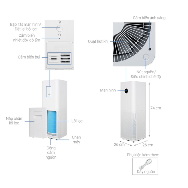 - Màn hình OLED thông báo chất lượng không khí