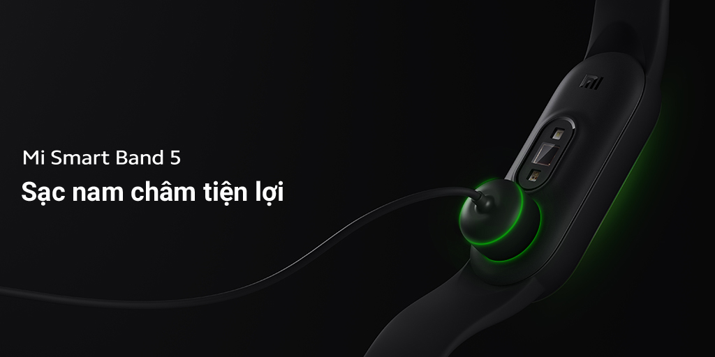 Theo truyền thống, tất cả các Mi Band phải được bật ra khỏi dây đeo silicon để sạc. Mi Band 5 mới loại bỏ rắc rối đó và mang theo tính năng sạc từ tính hoàn toàn mới. Ngoài ra theo tuyên bố của Xiaomi, Mi Band 5 có thời gian sử dụng tối đa 14 ngày cho một lần sạc đầy.