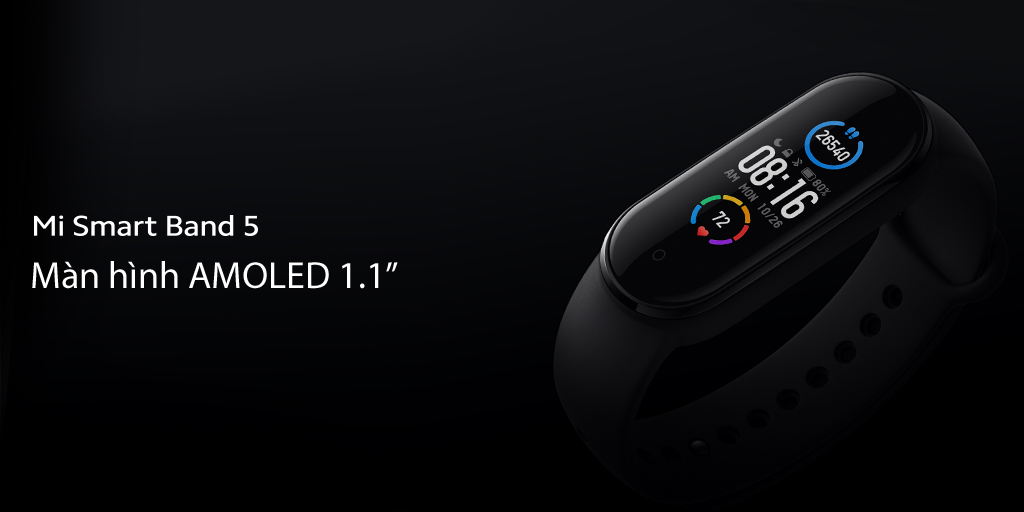 Màn hình AMOLED của Mi Band 5 lớn hơn so với Mi Band 4 với kích thước 1.1 inch. Nhờ đó mà màn hình hiển thị nhiều thông tin hơn. Bên ngoài màn hình là một tấm kính cường lực 2.5D bảo vệ màn hình khỏi trầy xước.